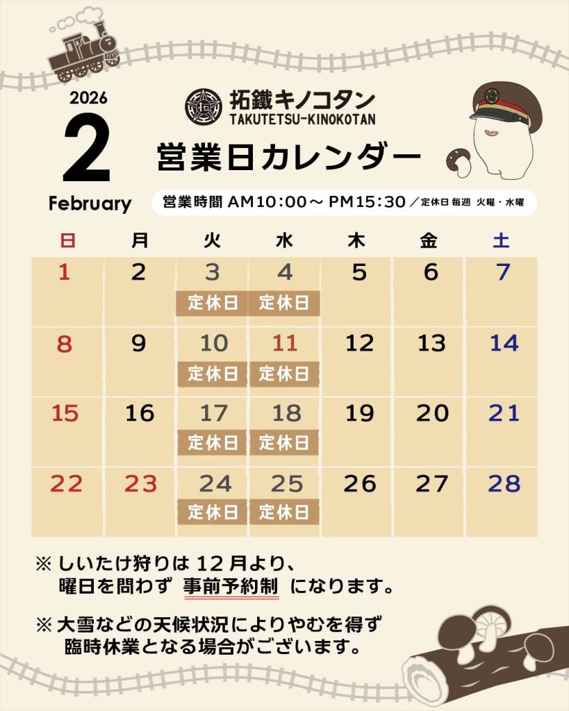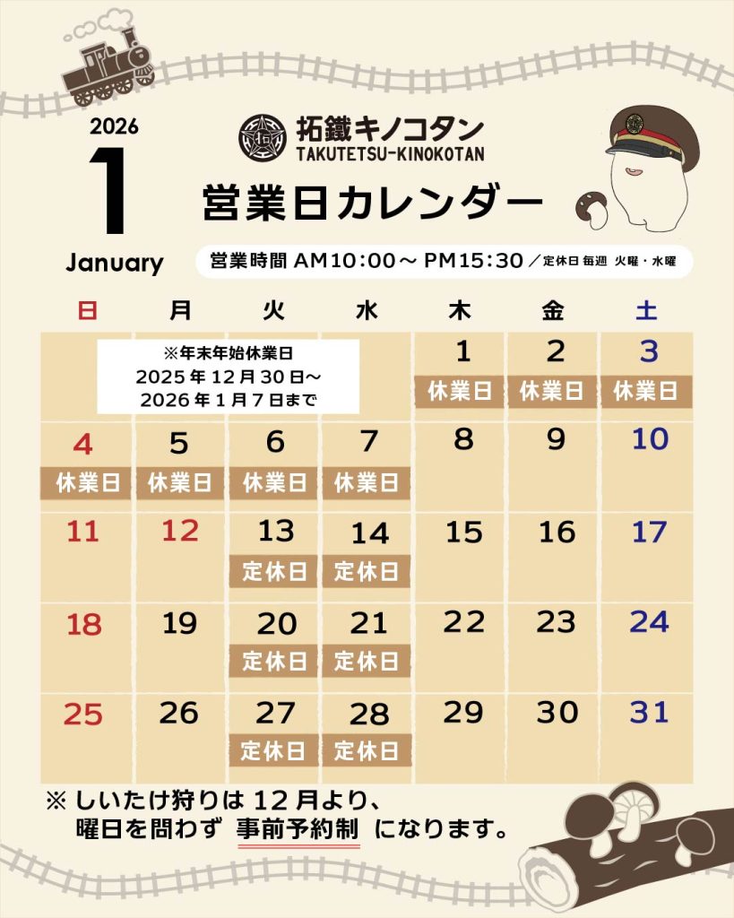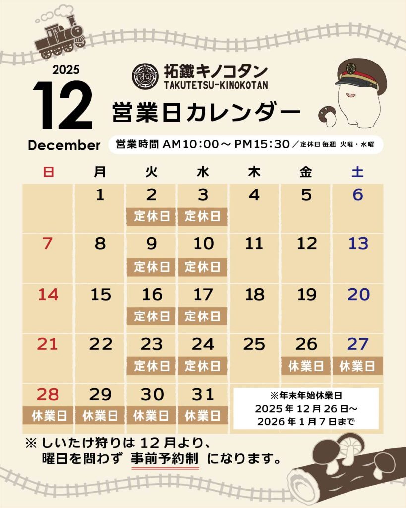 12月よりしいたけ狩りは全日事前予約が必要となります。