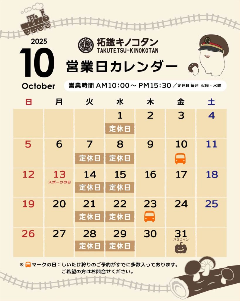※カレンダーにバスマークがある日は、すでに団体様のご予約を多数いただいておりますので、