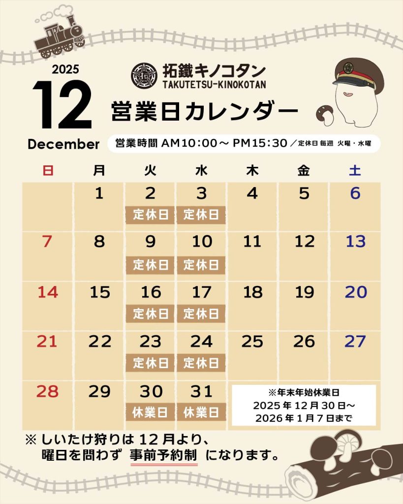 12月よりしいたけ狩りは全日事前予約が必要となります。